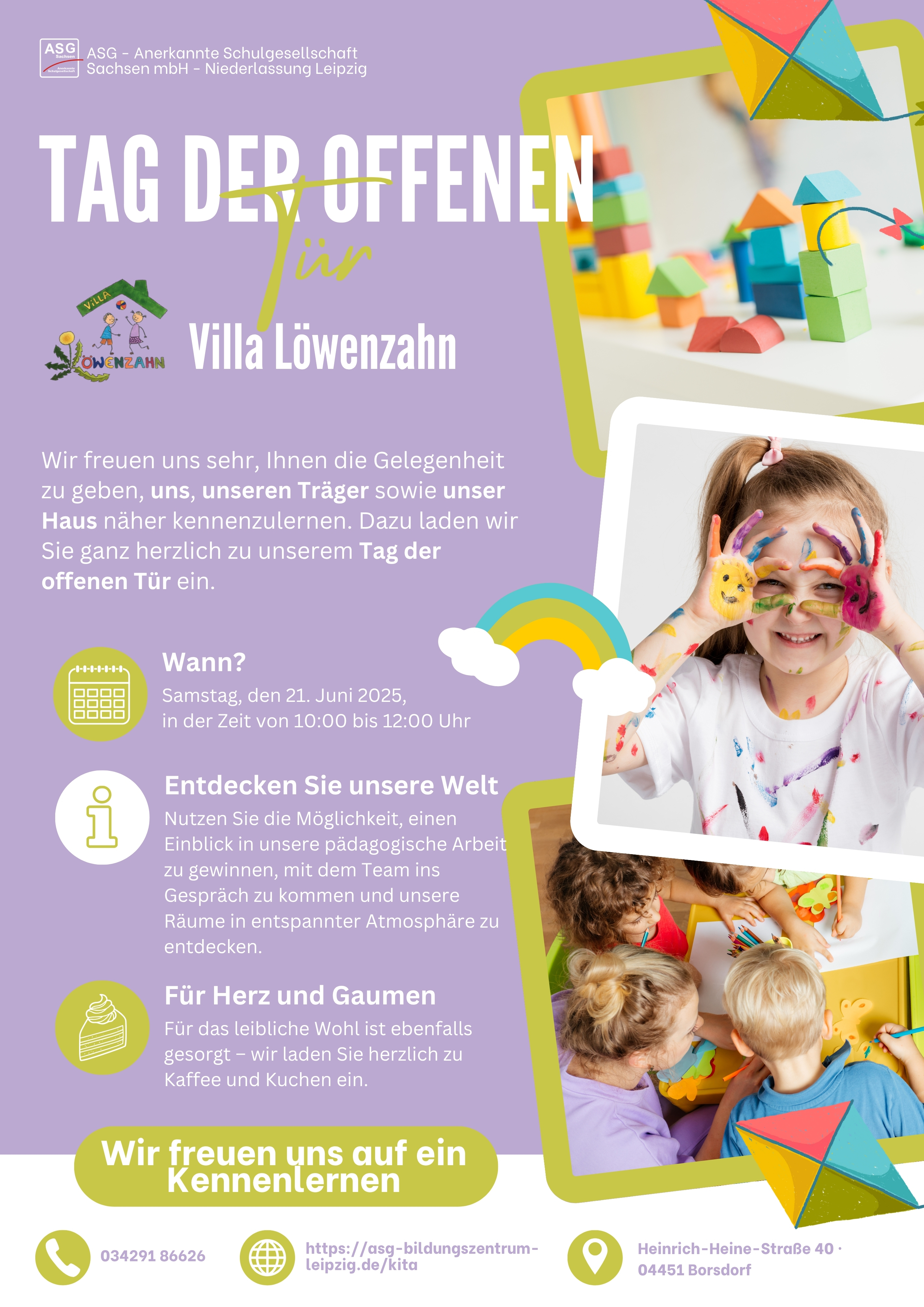 wir laden Sie herzlich zu unserem Tag der offenen Tür am 21. Juni 2025 in die Kita "Villa Löwenzahn" ein!
